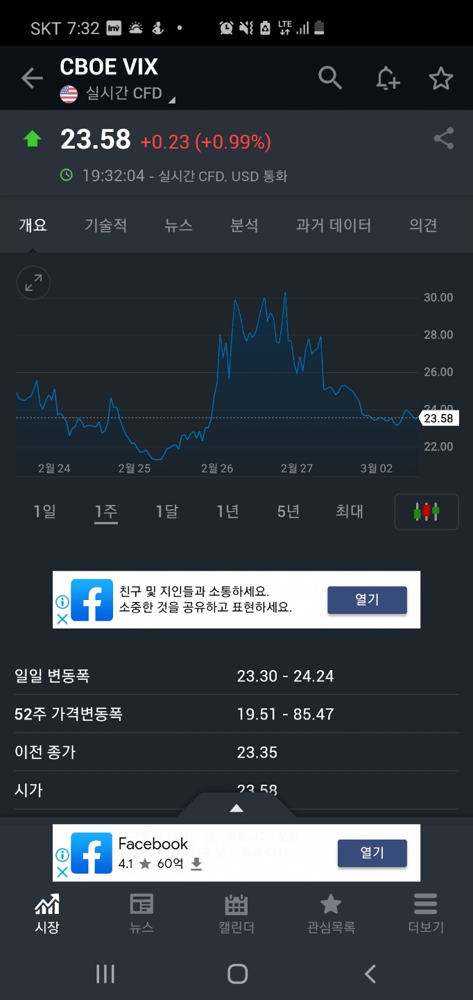 3월 1일인 어제는 연일 계속 상승하던 VIX 지수가 오래간만에 큰폭으로 하락하는 알람이 울렸다.