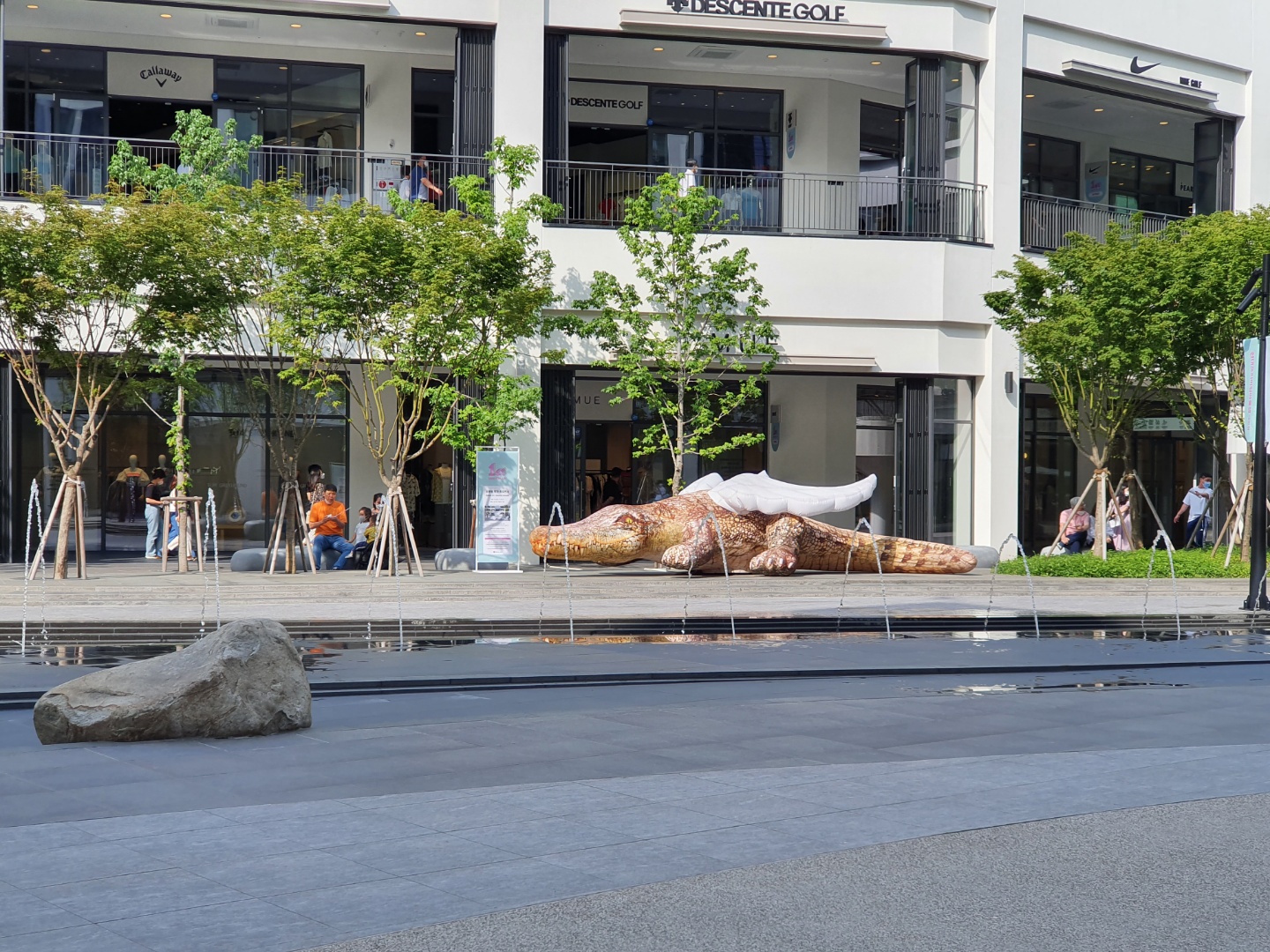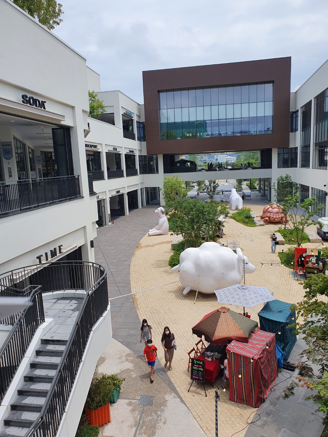 바깥에는 귀여운 동물 모양의 장식들과, 시원한 분수가 있고, 야외 가판대 등에서도 판매가 이뤄지고 있어요.