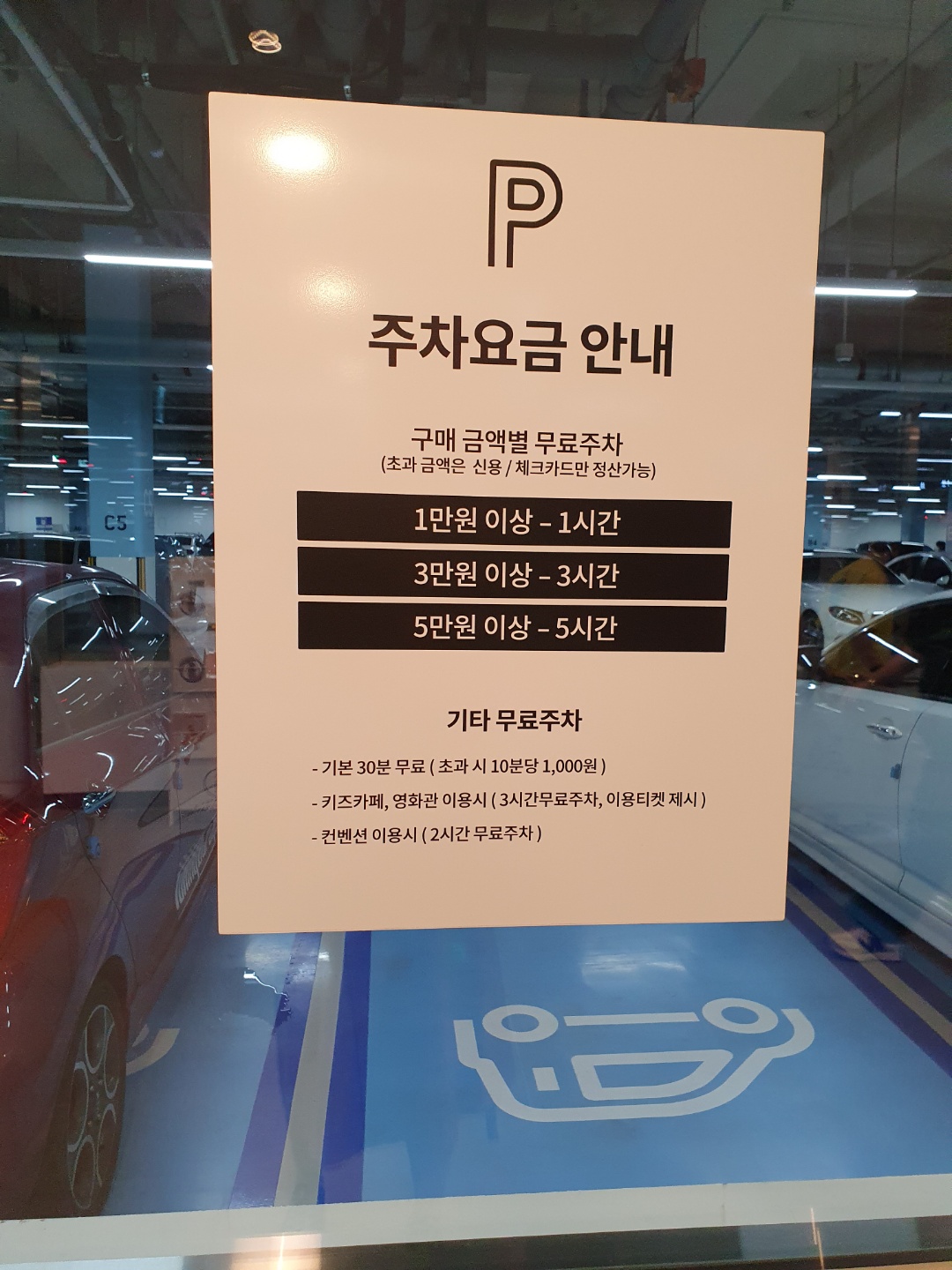 주차 요금에 대한 안내판이 붙어 있긴 하지만 현재는 무료로 운영되고 있으니 참고만 하시면 될 것 같아요.