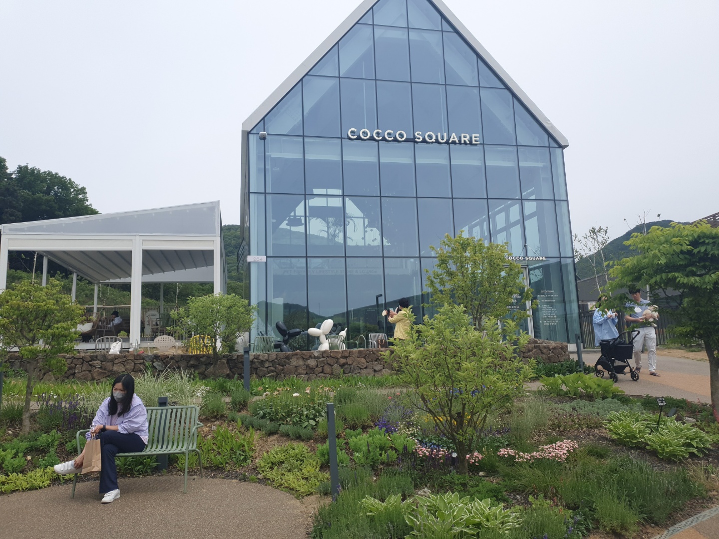 저희가 안쪽에서 자리를 차지하며, 식사와 커피를 했던 곳이 바깥쪽에서 보면 저렇게 온실 유리와 같은 디자인으로 설계가 되어 있어 외관이 참 예쁘더라고요. 실제로 안 쪽에 커피와 식물을 함께 파는 곳도 있었답니다.