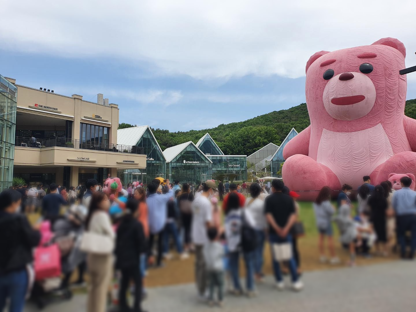 핑크 벨리곰이 롯데 아울렛에 떴다! 는 글을 본 적이 있는데, 정말 눈에 확 띄는 거대한 랜드 마크 더라고요.