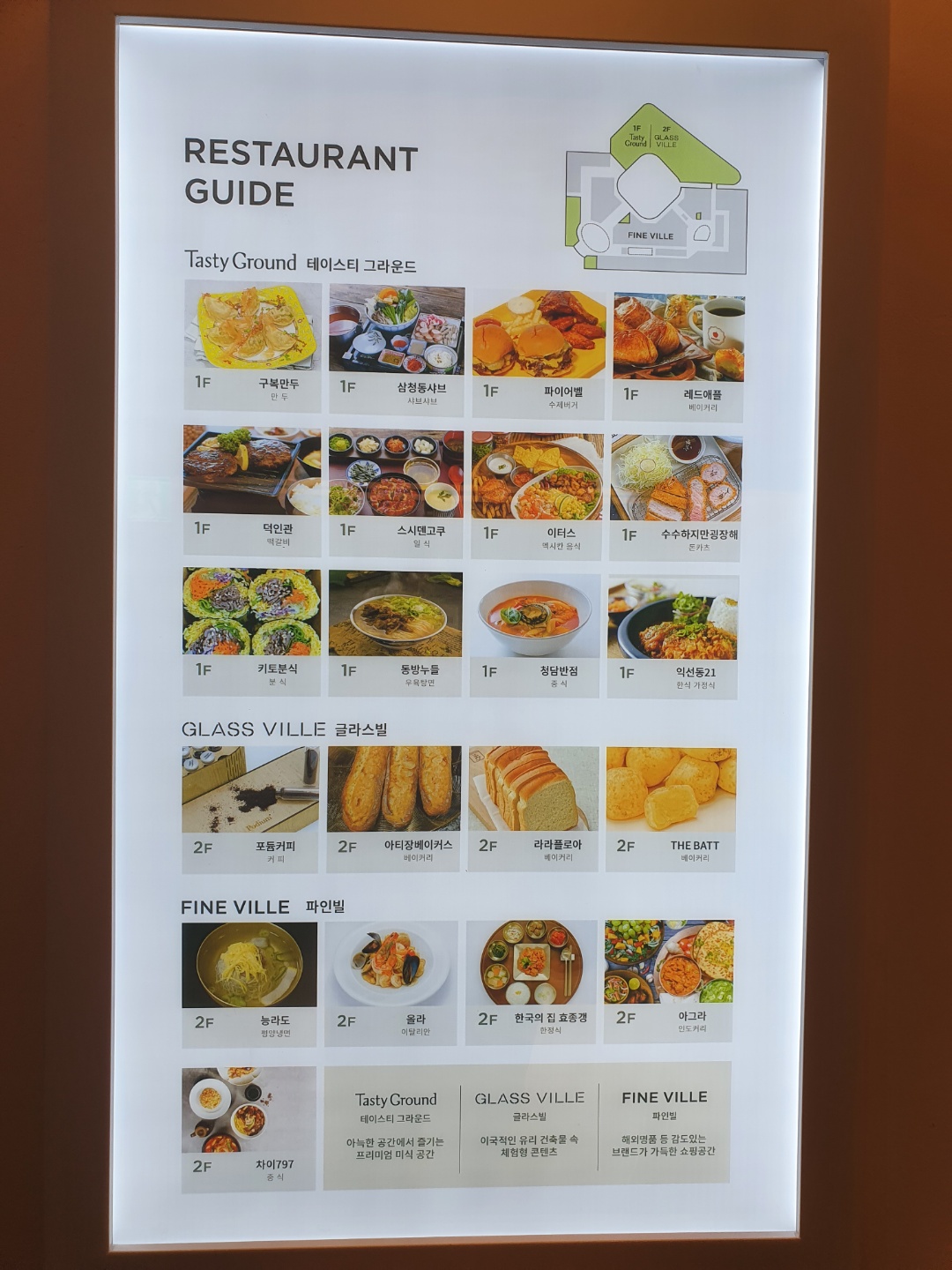 1층에 Tasty Ground로 들어가면 생각보다 더 넓은 공간에 다양한 식당이 입점해 있습니다. Restaurant Guide에 있는 것보다 더 많은 식당이 있으니 둘러보는 재미도 있어요.