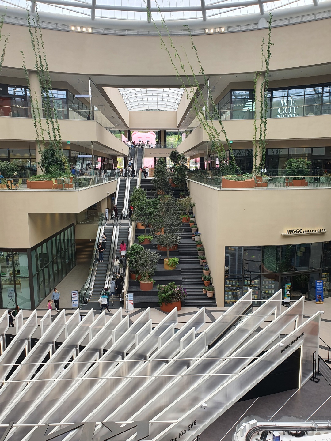 지어진지 얼마 안 된 신식 건물이라 그런지 비접촉 엘레베이터 버튼과 같이 깔끔한 시설과, 어린아이와 가족단위가 와서 즐길 수 있는 야외 공원(놀이터, 분수 등), 그리고 생각보다 많은 브랜드의 매장과 일식, 중식, 양식 등 다양한 식당과 카페가 있었습니다.