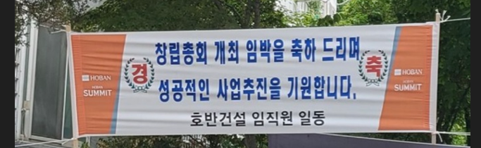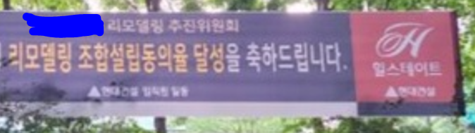 이쯤되니 아파트 여기저기 건설사에서 리모델링을 응원하는 플래카드, 현수막 같은 것을 걸어준 것이 보인다.