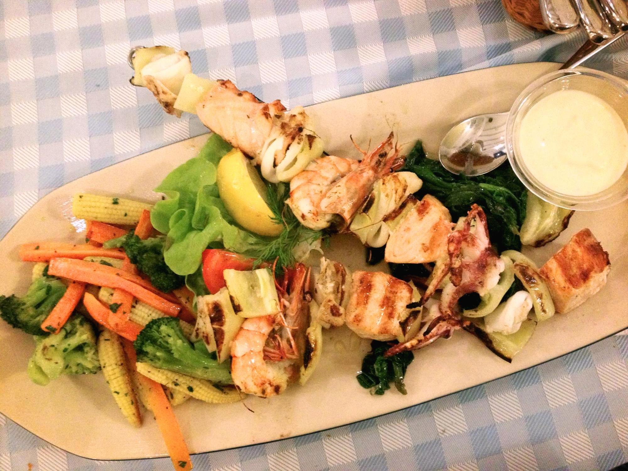 음식은 주로 이런 고기나, 해산물 꼬치와 야채구이들이 있는 플레이트 형태이다.