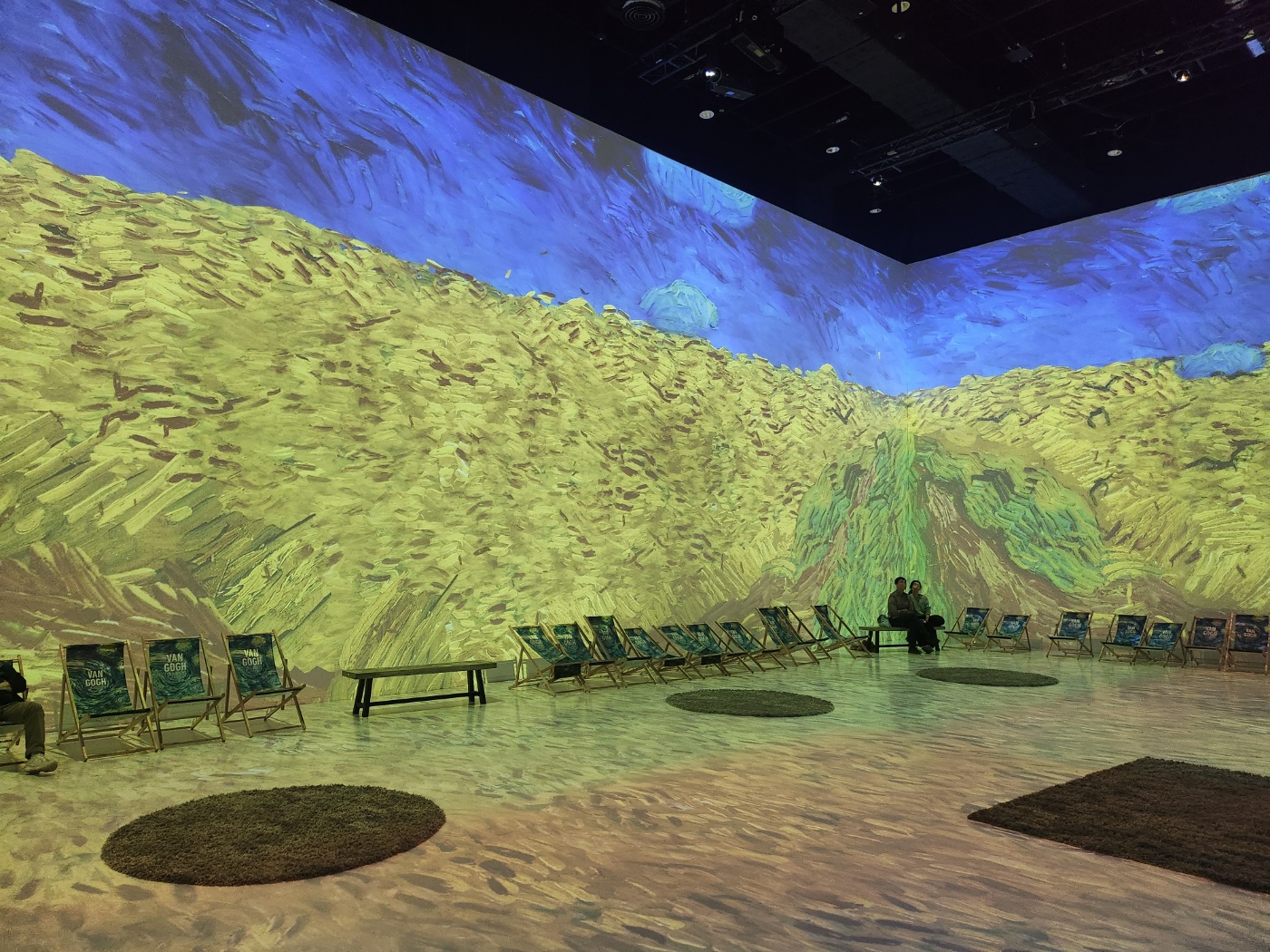 몰입형 체험을 통한 전시는 정말 인상 깊은 방식이었다. 전시장에 들어서면 마치 바닷가에 휴가를 온 것 같은 바캉스 의자들이 나란히 놓여 있고, 맘에 드는 한자리에 정말 휴가를 온 것처럼 편히 앉아 등을 기대고, 위아래옆 사방에서 펼쳐지는 반고흐의 일상과 작품들의 시각적 변화와 청각적인 효과를 한 번에 느낄 수 있어 마치 그림 속으로 여행을 온 듯한 느낌이었다. (걸어 다니지 않고 앉아서 즐겨서 더 좋았을지도;;)