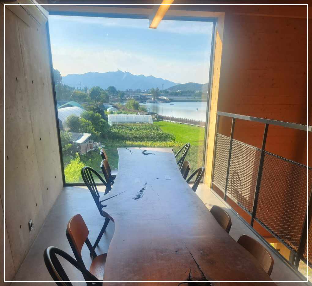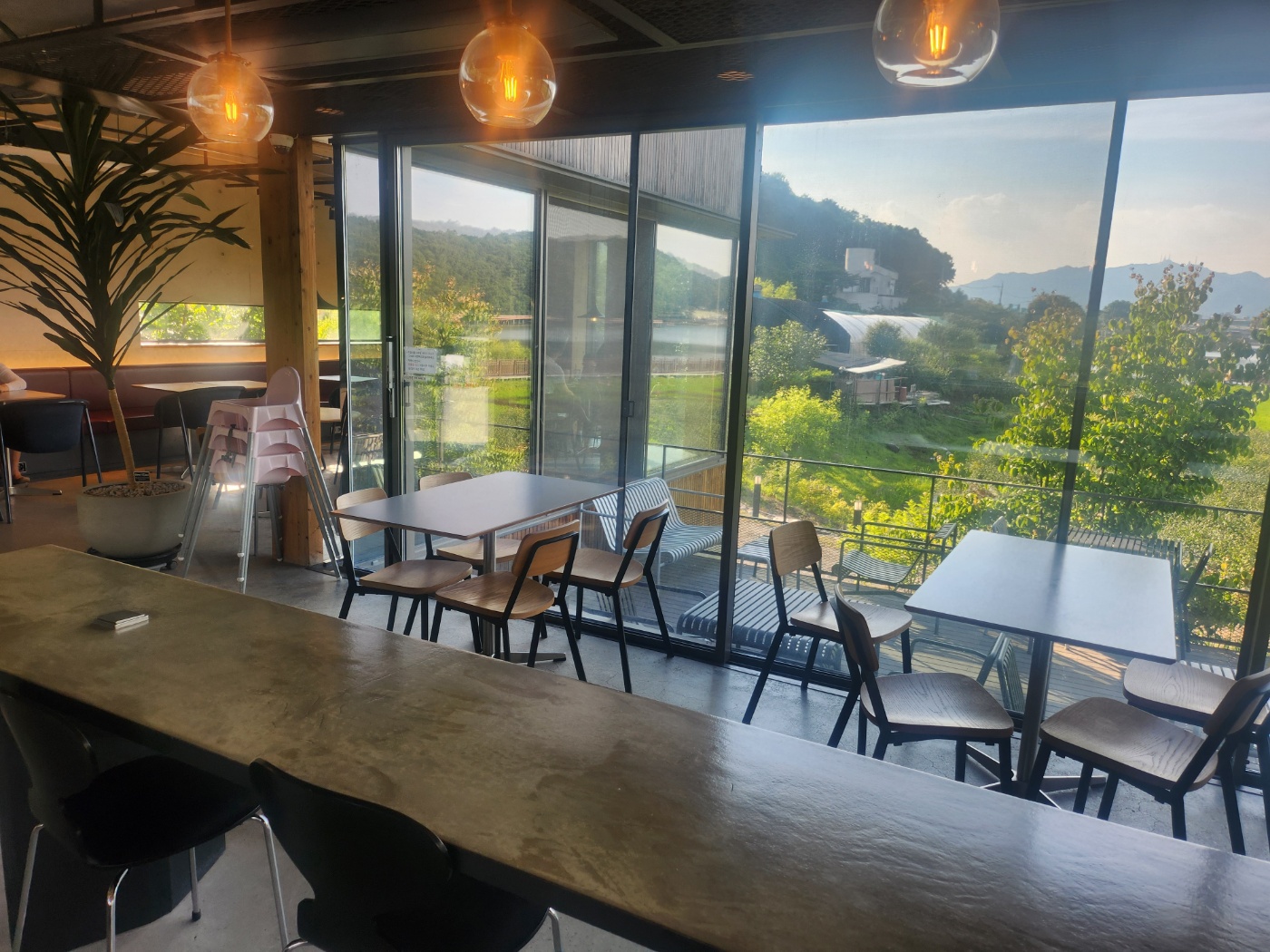 카페는 1층과 2층으로 나눠져 있는데 둘 다 모두 개방적인 느낌이라 호수 뷰를 감상하기 좋다. 가장 좋았던 점은 백운 호수 둘레길 바로 옆에 있는 카페들은 호수가 가까이 있는 것은 좋으나 사람이 너무 많고 좁고 시끌시끌해서 관광지 카페같이 여유가 없어 빨리 나오고 싶었었다. 반면 이곳은 그에 비해 넓은 호수와 푸른 들판 뷰를 그림같이 감상할 수 있으면서도 조용히 대화를 나누기 좋은 공간이었다.