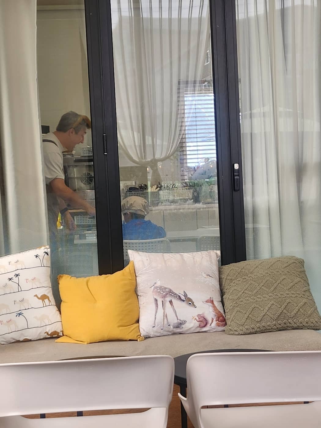 클래스가 진행되는 곳은 통유리창으로 된 곳으로 커튼을 활짝 열어 놓고 진행하기 때문에 보호자도 밖에서 커피 한잔 하며 안의 상황을 볼 수 있습니다. 쿠킹에 필요한 재료도 나눠주고 앞에 영상을 통해 만드는 법 등도 영어로 설명해 주고, 아이에 참여를 유도해 질문도 받습니다. 우리 아이도 손을 번쩍 들어 대답하려고 하는 것을 보니 역시 아이들은 외국인과도 금방 스스럼없이 친해지나 보다 싶었습니다.