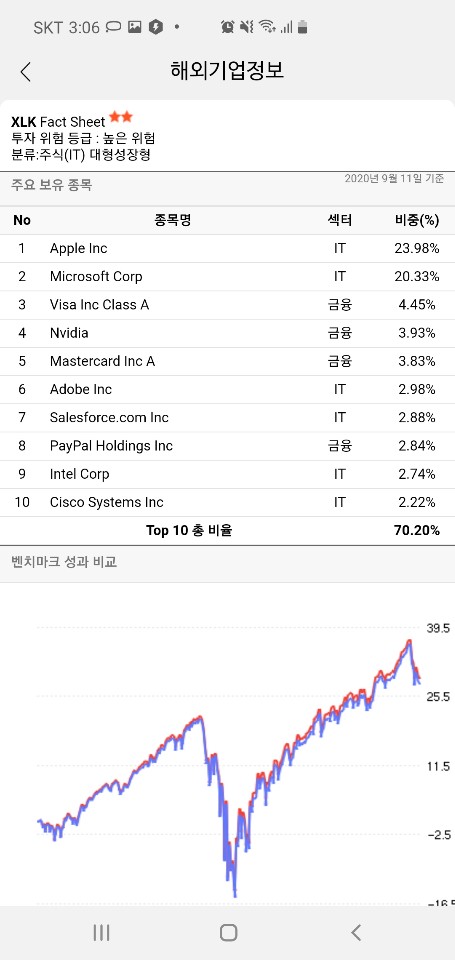 -상기 QQQ의 한 주당 가격이 그래도 좀 부담스럽다면 XLK도 미국 대표 기술주를 모아둔 ETF이다.