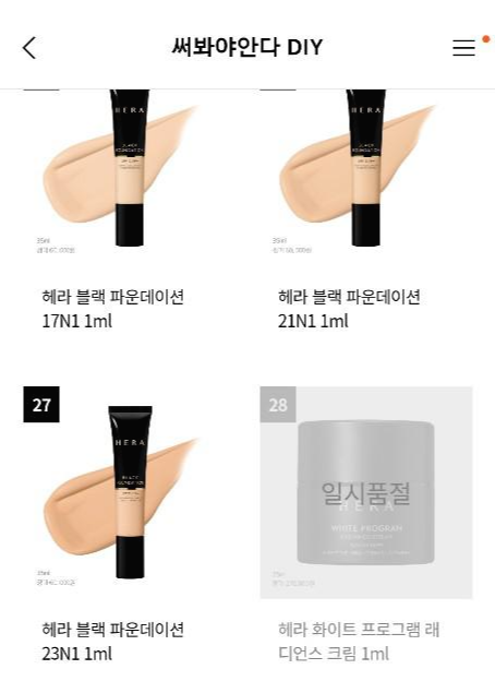 아니면 정말로 구매하고 싶은 아이템이 있다면 실제로 파운데이션 색상이 호별로 내 피부에 맞는지